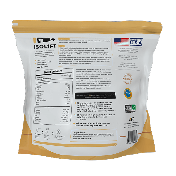 ISOL1FT encapsula la pureza y potencia de su fórmula en su nueva y transportable presentación en bolsa, esta proteína es el suplemento proteínico por excelencia para deportistas y entusiastas del fitness. Cada gramo de ISOL1FT es testimonio de un compromiso inquebrantable con la calidad, ya que ofrecé 25 g de proteína en cada porción, además, su fórmula y fabricación se realiza en EE. UU. ISOL1FT acelera la recuperación muscular, incrementa la fuerza y la resistencia, fortalece el sistema inmunológico y ayuda a tener una silueta definida y magra.El delicioso sabor de ISOL1FT, transforma tu entrenamiento, supera tus propios récords y redescubre tu potencial físico. La elección de ISOL1FT es el paso definitivo hacia la excelencia deportiva con un bienestar integral.